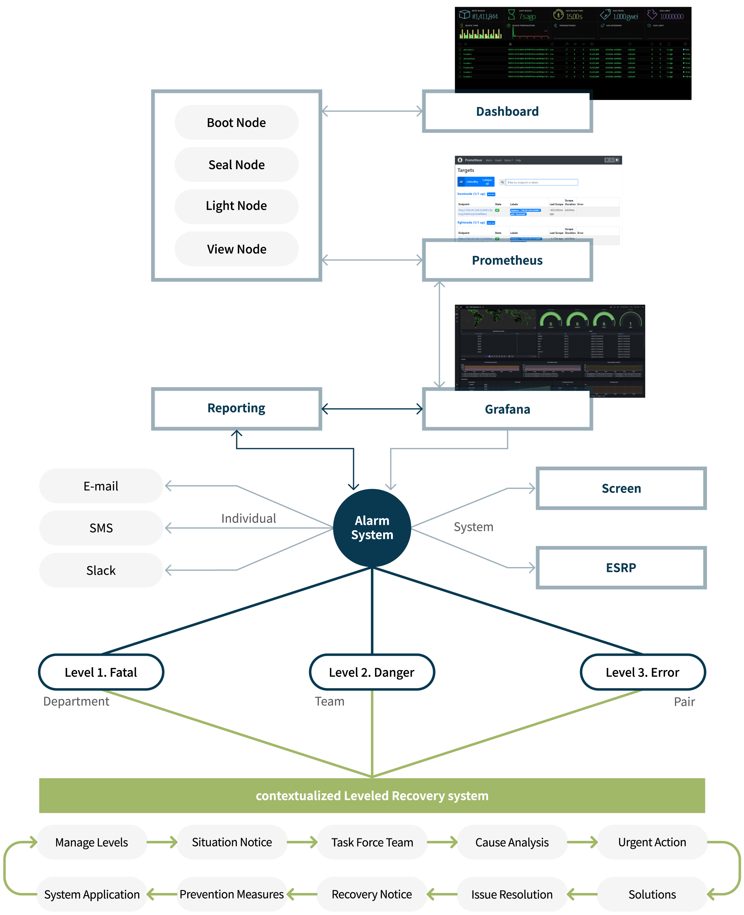 It is to monitor the status of the server that drives the blockchain distributed ledger. Also, through it, it is possible to check whether block creation is proceeding smoothly, and when a problem occurs in the system, a notification is sent so that the administrator can be notified of the problem.Business Applications